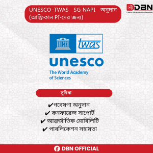 : আফ্রিকান গবেষকদের জন্য সর্বোচ্চ USD ৬৭,৭০০ অনুদান UNESCO ও The World Academy of Sciences এর যৌথ উদ্যোগে SG-NAPI প্রোগ্রামটি আফ্রিকার প্রারম্ভিক পর্যায়ের প্রধান গবেষক (PI)-দের জন্য বিশেষভাবে প্রণীত। এই অনুদানের আওতায় গবেষণা ব্যয়, আন্তর্জাতিক কনফারেন্সে অংশগ্রহণ, গবেষণা মোবিলিটি এবং প্রকাশনা সহায়তা প্রদান করা হবে। সর্বোচ্চ অনুদান পরিমাণ USD ৬৭,৭০০।